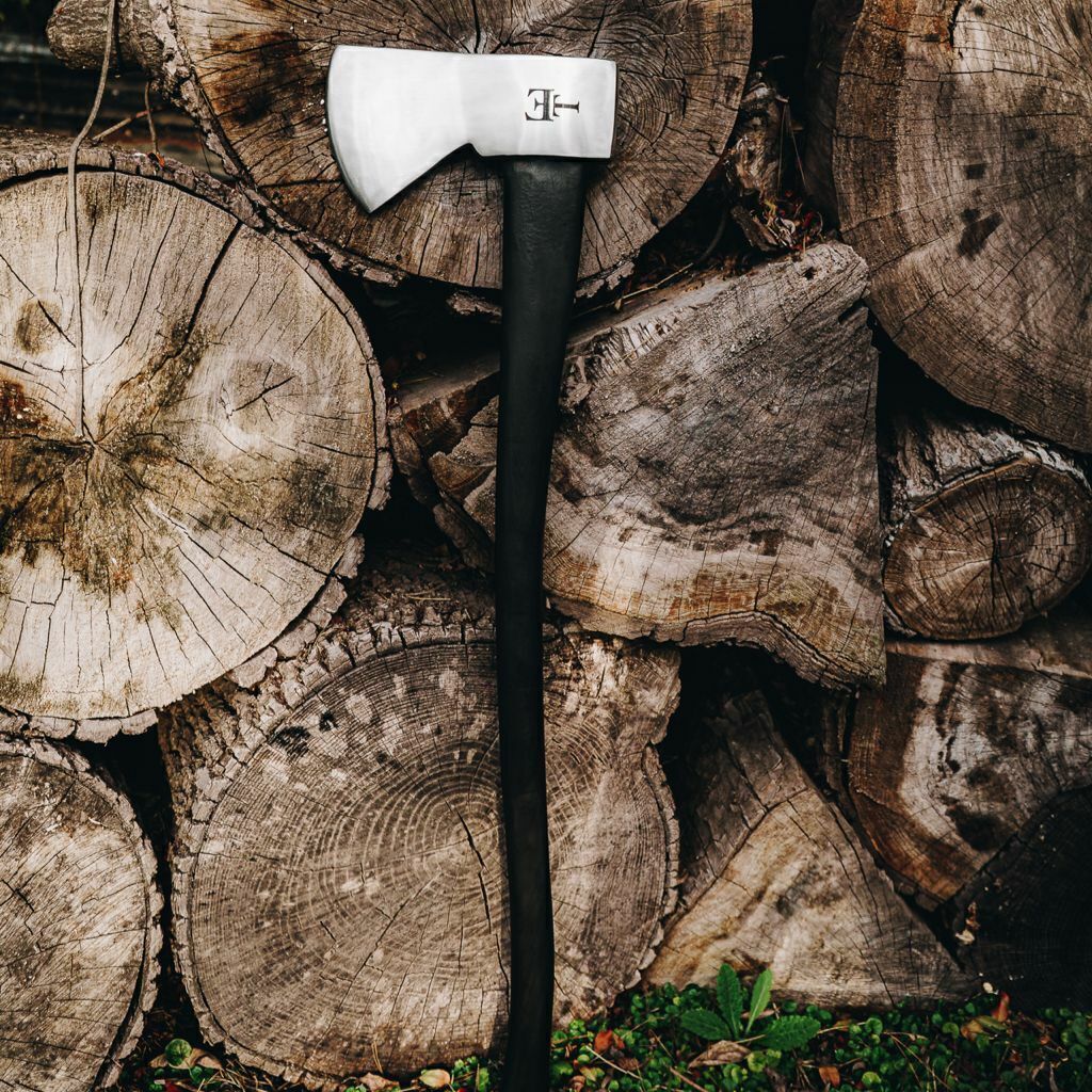 Hacha con mango de madera de Lapacho quemada y acero al carbono